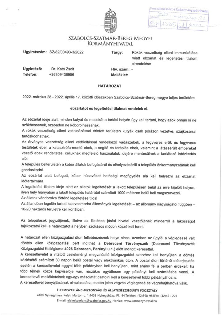 • Porcsalma Nagyközség Polgármesteri Hivatal közétételi listája