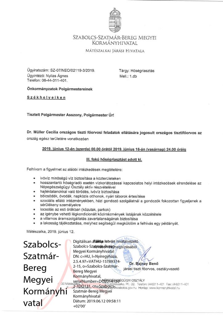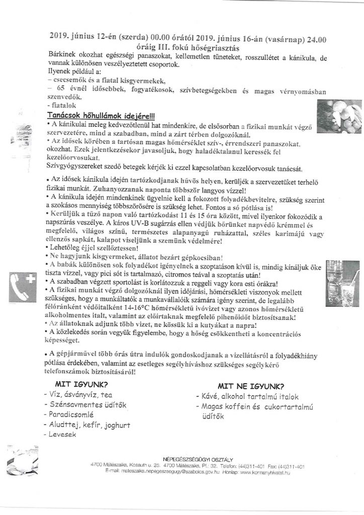 2019. május 15.-én (szerdán) 15.00 - 16.00 óráig a Polgármesteri Hivatal udvarán (PÓTOLTÁS)