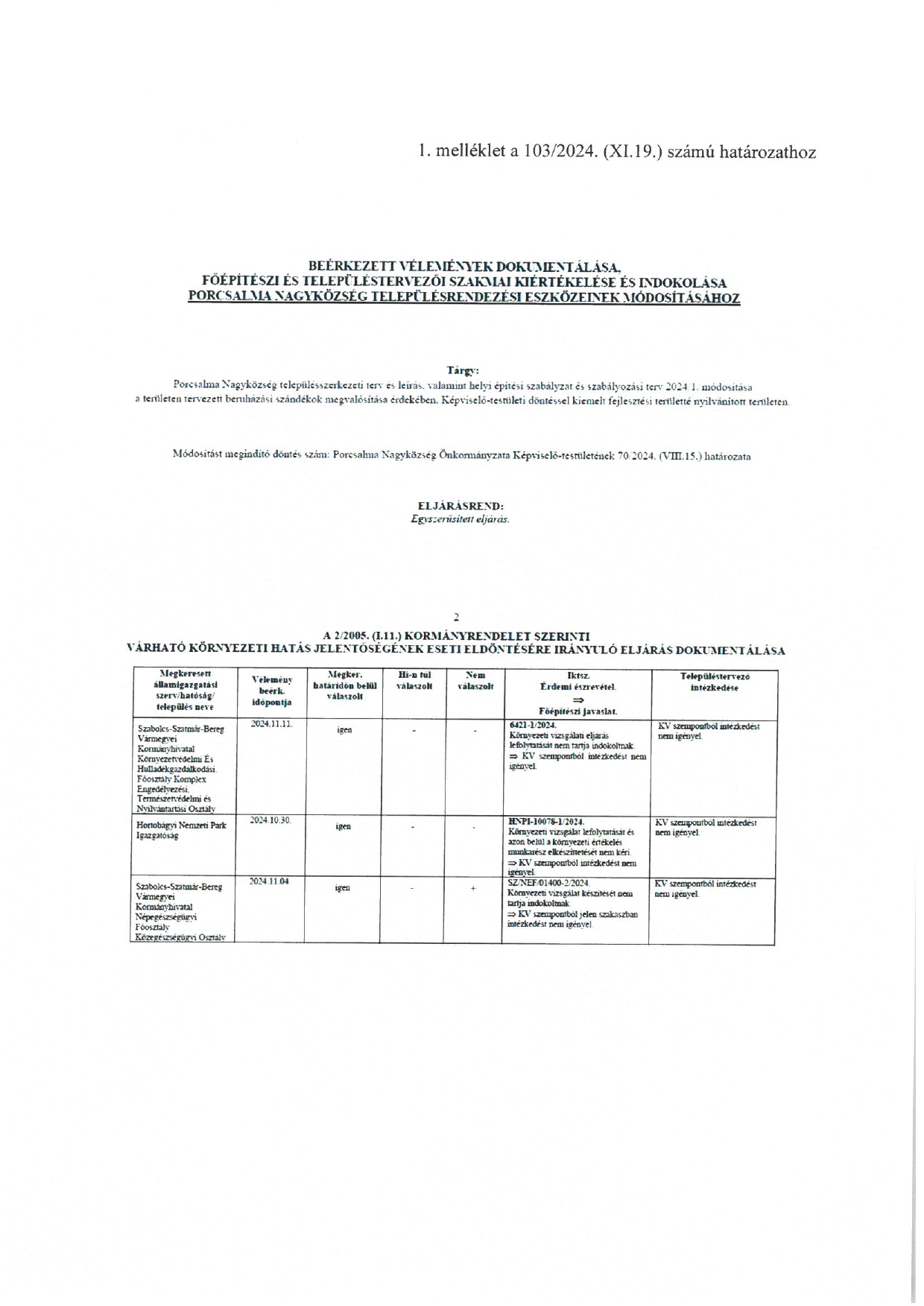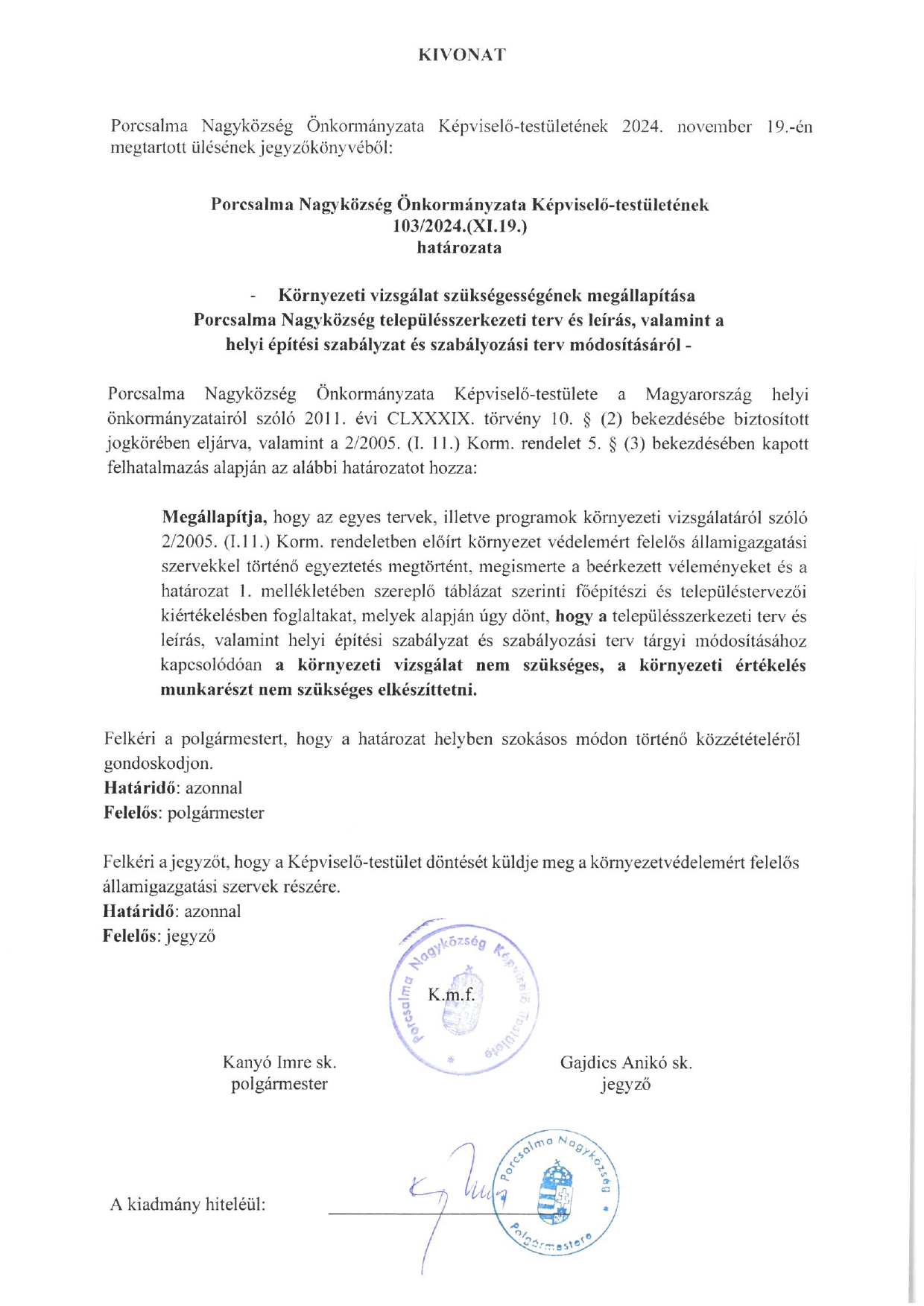 Porcsalma Nagyközség Helyi építési Szabályzat és Szabályozási Terv módosítása