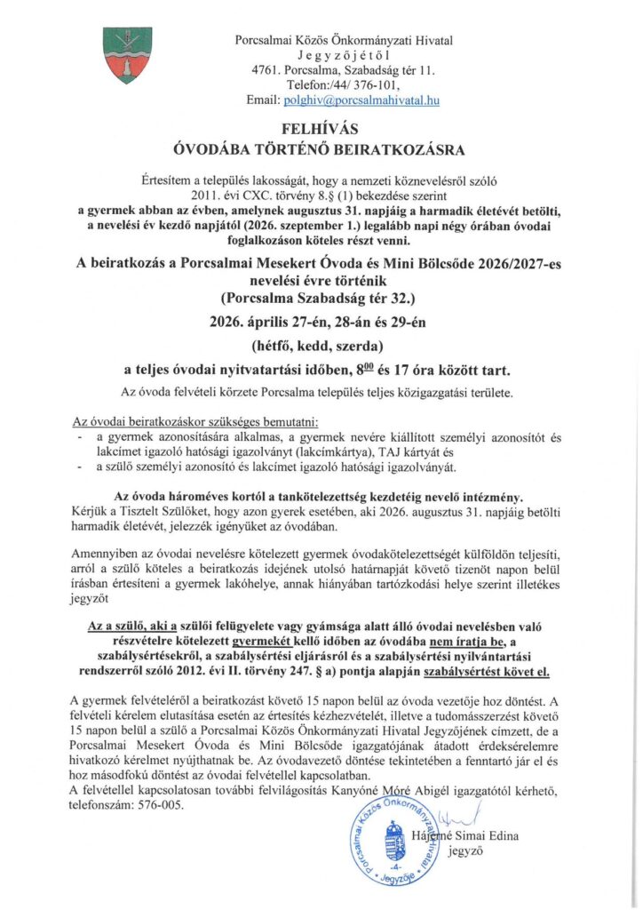 PORCSALMA NAGYKÖZSÉG ÖNKORMÁNYZATA