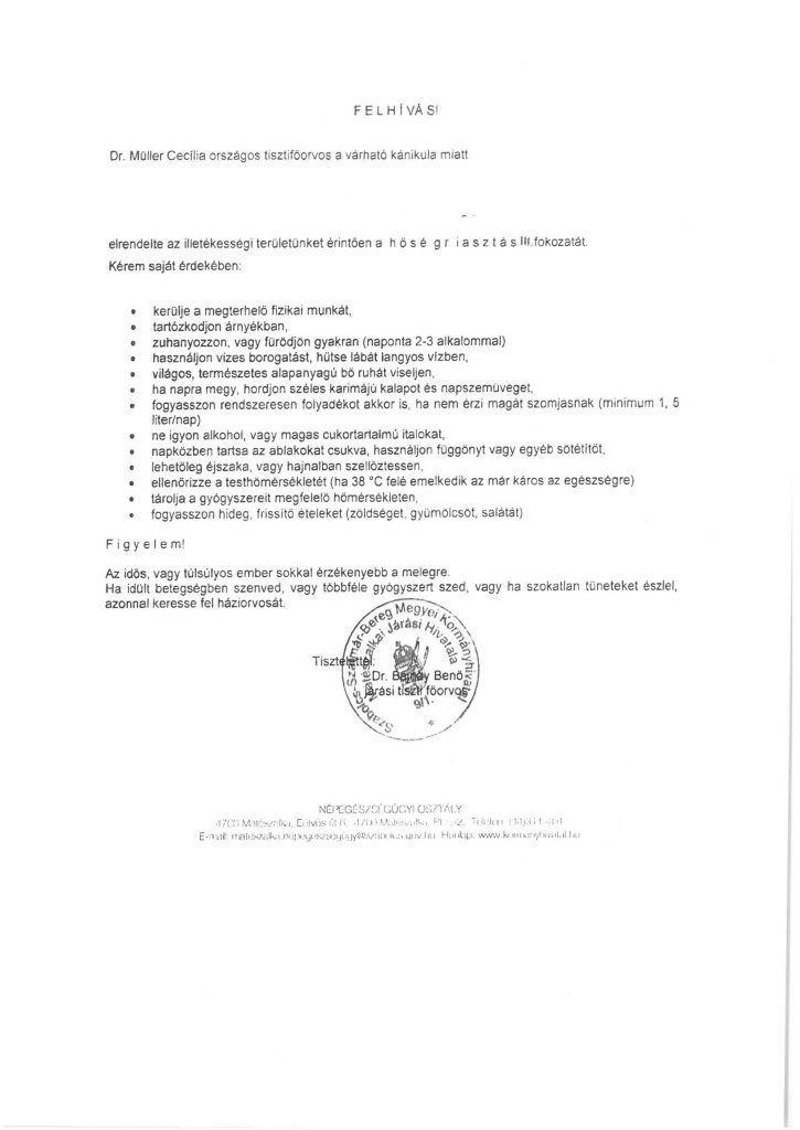 Hőségriadó tájékoztató – 2021.07.13