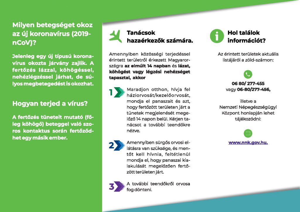 KORONAVÍRUS TÁJÉKOZTATÓ