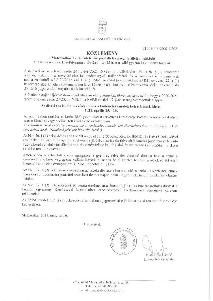 • Intézményünk az Oktatási Hivatal Bázisintézménye