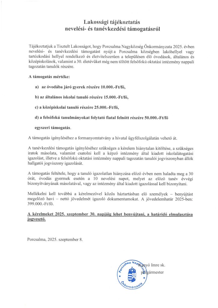Lakossági tájékoztatás szociális célú tűzifa támogatásról