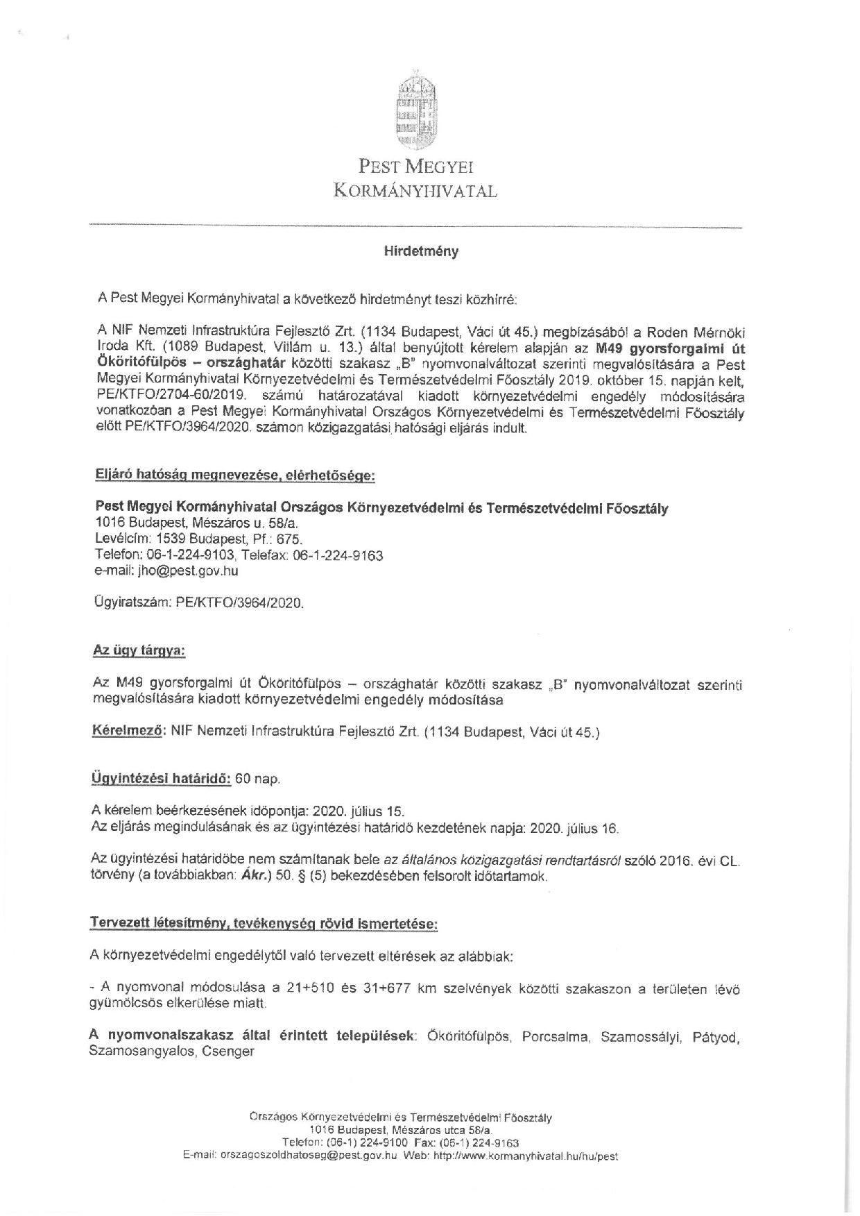 Kérelem és mellékletek: http://www.kormanyhivatal.hu/hu/pest/kornyezetvedelmi-hirdetmenyek