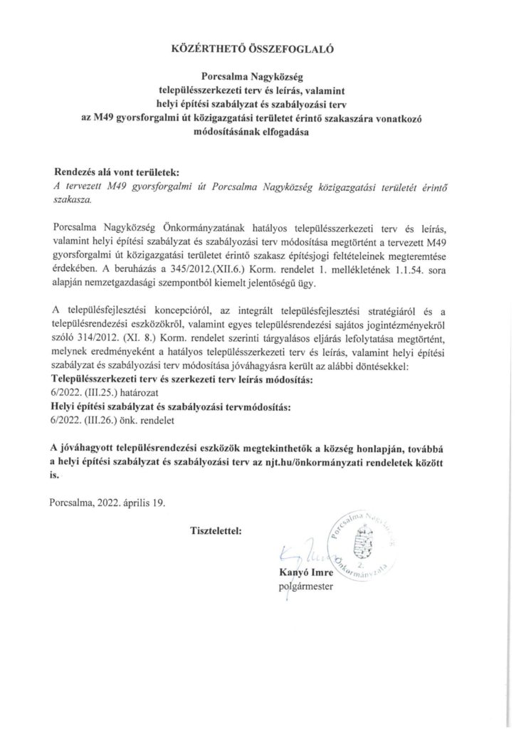 M49 – településszerkezeti terv módosítása